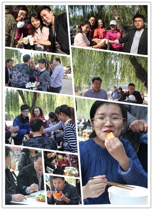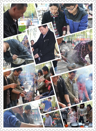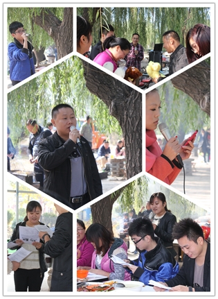 這邊美食還在回味中,那邊的節(jié)目表演已經(jīng)開場了,銷售一部超越組的帥小伙云卿一亮相就震撼全場,楊宗緯的《洋蔥》模仿的象模象樣。歌聲蕩漾,婉轉(zhuǎn)飛揚(yáng),美食正在繼續(xù)中,廚藝比賽一結(jié)束,時鐘已嗒嗒地跑到了中午11:00整,大規(guī)模的團(tuán)隊宴席就正式開始啦。小組成員們馬不停蹄,燒烤,爆炒,涼調(diào),拼盤,個個都使出拿手絕活,大有一種不把現(xiàn)場“熱翻天就不罷休“的勢頭,除夕年夜飯的感覺盡然給烘托了出來,空氣里滿是讓人味蕾開放的各色香味兒。上菜了,上菜了,一道道精致的菜肴象一件件精美的藝術(shù)品, 成員們個個大快朵頤,觥籌交錯,美食,歌聲,小品,歡笑,各種逗趣兒,這溫馨的現(xiàn)場時光,成員們個個都忘記了疲倦,忘記了年齡,忘記了曾經(jīng)的挫折,忘記了生活路上太多太多的沉重,取而代之的是激情,是堅韌,是快樂,是勇敢,是振奮,是沖刺,是自信,是對未來美好的憧憬和向往………