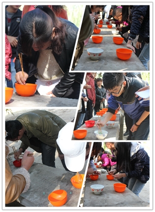 按照游戲規(guī)則,各小組按游戲排名先后順序領(lǐng)取食材進(jìn)行下一輪的廚藝大比拼,每個小組在備選食材中選兩樣組合成一道菜,并取好與之相符合的菜名。當(dāng)號聲一吹響,全員總動員,洗菜、切菜,點火,開炒,于是整個現(xiàn)場,人頭攢動,摩肩接踵:鍋碗瓢盆的撞擊聲,油鍋里的吱吱聲,還有現(xiàn)場的各種歡笑聲,整個現(xiàn)場再一次被全員的熱情點燃。不到半小時,現(xiàn)場就飄來讓人垂涎欲滴的菜香。首先上菜的是第六小組,他們?yōu)榇蠹覝?zhǔn)備了清爽可口的“春天的希望”,然后依次是第二組,第三組,第五組,第四組,第一組分別為大家呈現(xiàn)的:饕餮大餐鍋爆肉,天女散花,鳳凰展翅,豐碩的果實,珍珠翡翠湯。 六道菜葷素搭配,色香味各俱特色,相得益彰。拉票環(huán)節(jié),各小組代表分表講解了菜名的意義,妙語連珠,字字如珠璣,擲地如有聲。贏得陣陣喝彩。最后,經(jīng)過美食評委團(tuán)認(rèn)真評議,第一組的“珍珠翡翠湯”贏得了評委會的青睞,獲得了美食大獎第一名。