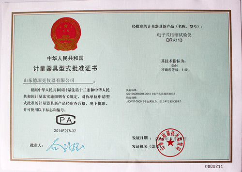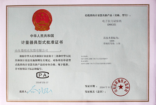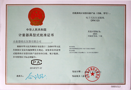 近日,德瑞克接到市局通知,在濟(jì)南市質(zhì)量技術(shù)監(jiān)督局一樓計(jì)量器具型式許可證窗口領(lǐng)取到了電子拉力試驗(yàn)機(jī)型式批準(zhǔn)證書(shū)(證書(shū)編號(hào)2014F376-37),加上之前領(lǐng)取的電子式抗壓試驗(yàn)機(jī)(證書(shū)編號(hào)2014F277-37)、電子式壓縮試驗(yàn)儀(證書(shū)編號(hào)2014F278-37)的型式批準(zhǔn)證書(shū),至此,德瑞克涉及的國(guó)家法定監(jiān)管的計(jì)量產(chǎn)品已全部獲得證書(shū)。
