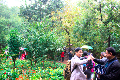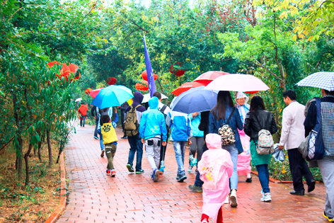 天公作美,一場淅淅瀝瀝的秋雨應景而落,沒有秋日斜陽,雨中的山川倒顯得更加通透,清潤,更加秋意盎然。德瑞克人雨中穿行,留下了一路歡聲笑語。紅葉、山川、飛瀑、古塔,和如織的游人一起組合成了一幅唯美的秋日油畫,伙伴們用微笑定格,和美景和這美好的時光一起留進了影象。
