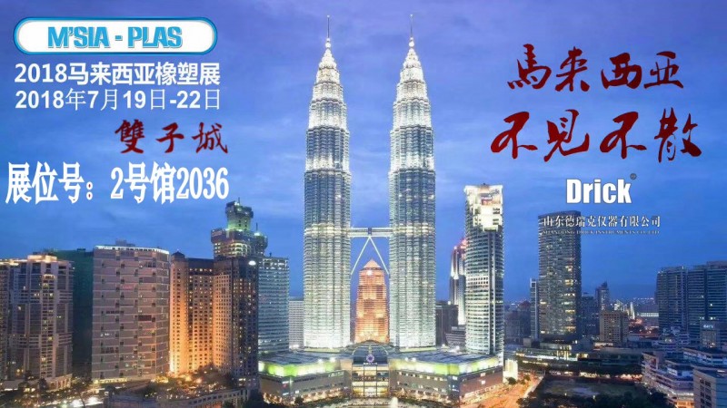 2018年馬來西亞國際塑膠展M’SIA-PLAS 2018于今日在馬來西亞吉隆坡太子世界貿(mào)易中心盛大開幕!山東德瑞克儀器有限公司為了提高自身實力,增強(qiáng)企業(yè)競爭力應(yīng)邀前來!我們在2號館2036展位等您!本次展會由我們外貿(mào)部屈總帶隊,歡迎國內(nèi)外客戶蒞臨指導(dǎo)!