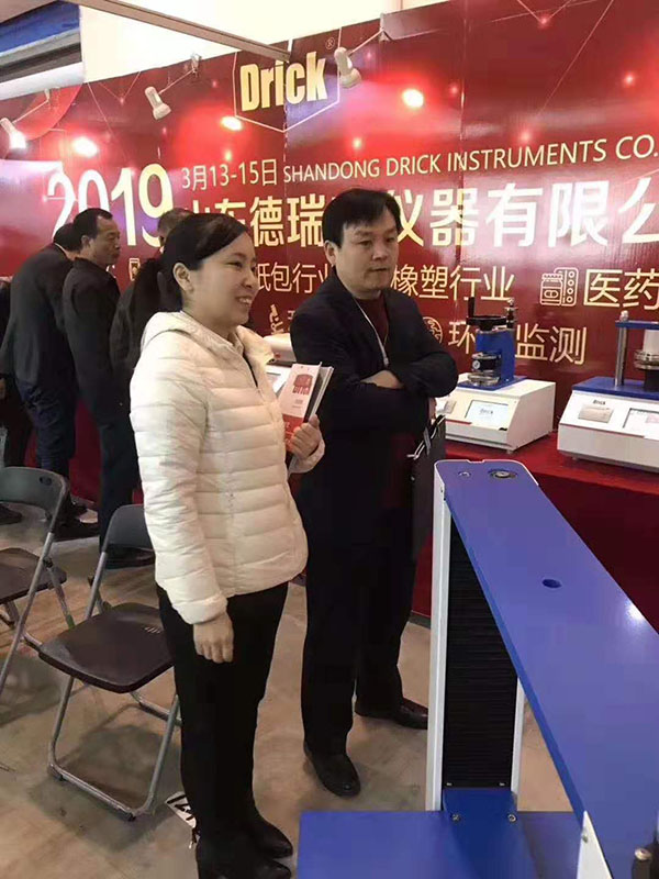 上午九點(diǎn),一曲歡快的《好運(yùn)來(lái)》為展會(huì)開(kāi)幕式增添了濃墨重彩的一筆。本次展會(huì),我們展出的產(chǎn)品有:電子拉力試驗(yàn)機(jī)、壓縮儀、耐破度儀、測(cè)厚儀、熱封儀、耐折度儀、戳穿度儀以及各種取樣器。展會(huì)開(kāi)始不久,憑借產(chǎn)品的外觀、性能以及參展人員專業(yè)的產(chǎn)品知識(shí)、銷售技能,我們的展臺(tái)前來(lái)了一波又一波的觀展人員。為企業(yè)帶來(lái)了更深層次的潛在客戶。