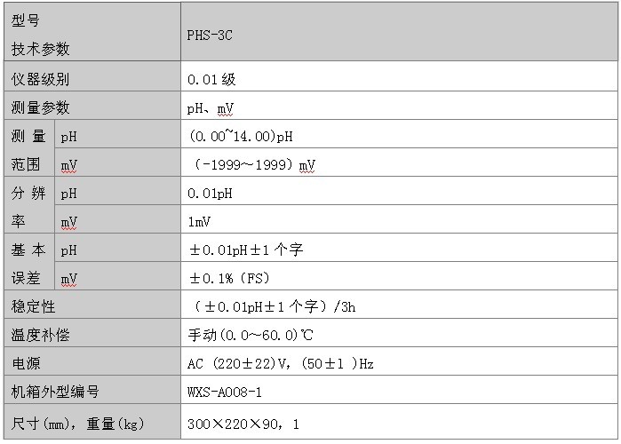 PHS-3C型精密酸度計:采用大屏幕LCD段碼液晶顯示,自動標準緩沖溶液識別功能、二點校準,有手動溫度補償功能,配用E-201-C Q9型pH復合電極。